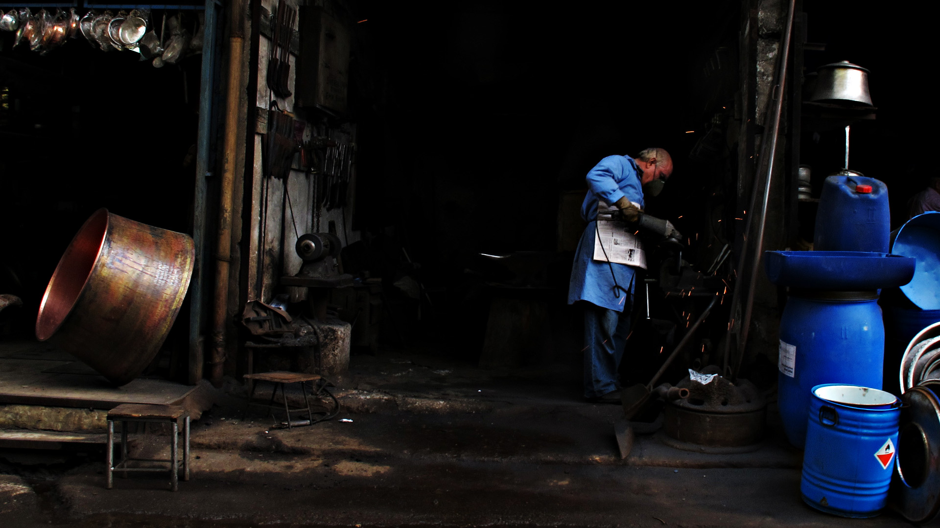 25 November 2010 permalinkMalatya, Eastern turkey. Just a stop on my hitch to Erzurum. But I explore a little bit looking for lunch. I ask two old guys in shalvar (baggy Kurdish pants, my new favorite). They insist on walking half an hour with me, towards the good place. I’m disappointed when I discover it’s kabob again. But it’s smack in the middle of the iron monger’s district. Everywhere there is loud banging, the sounds of mending and welding. Pandemonium (or feast) for eyes, ears and nose. I’m satisfied with my detour, and a little sad when I discover it’s in my guidebook.