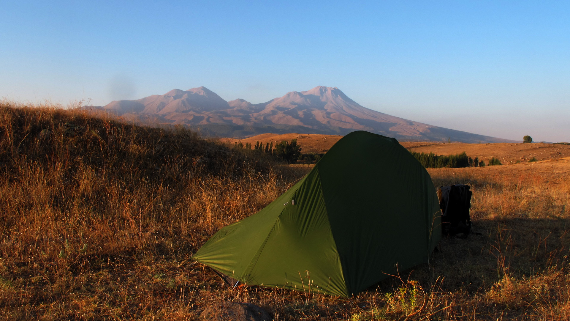 The second day we lost a lot of time hitchhiking to Ihlara, so we slept on the outskirts of town, facing Hassan mountain for sunrise (1922 meters from the base).